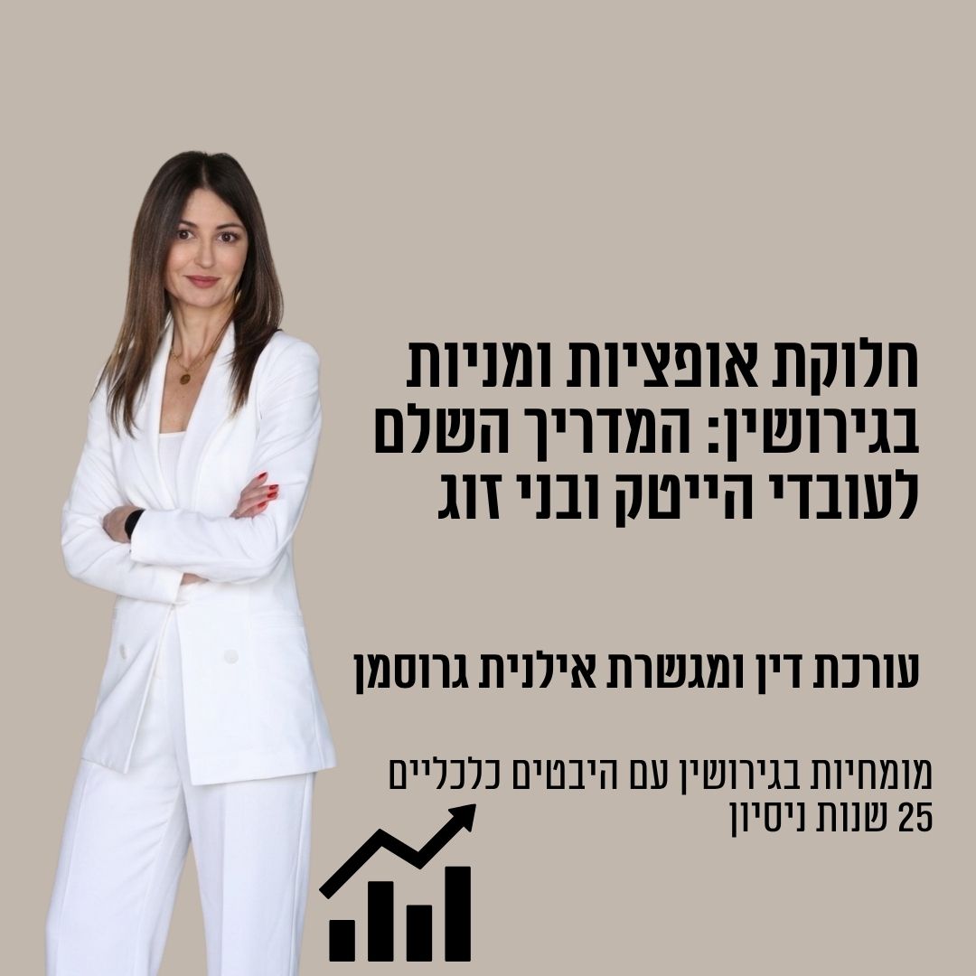 חלוקת אופציות ומניות בגירושין – אם אתם עובדים בהייטק, לרוב, חבילת השכר שלכם כוללת גם אופציות או RSU. חלקם כבר הבשילו, חלקם עדיין בתהליך Vesting....
